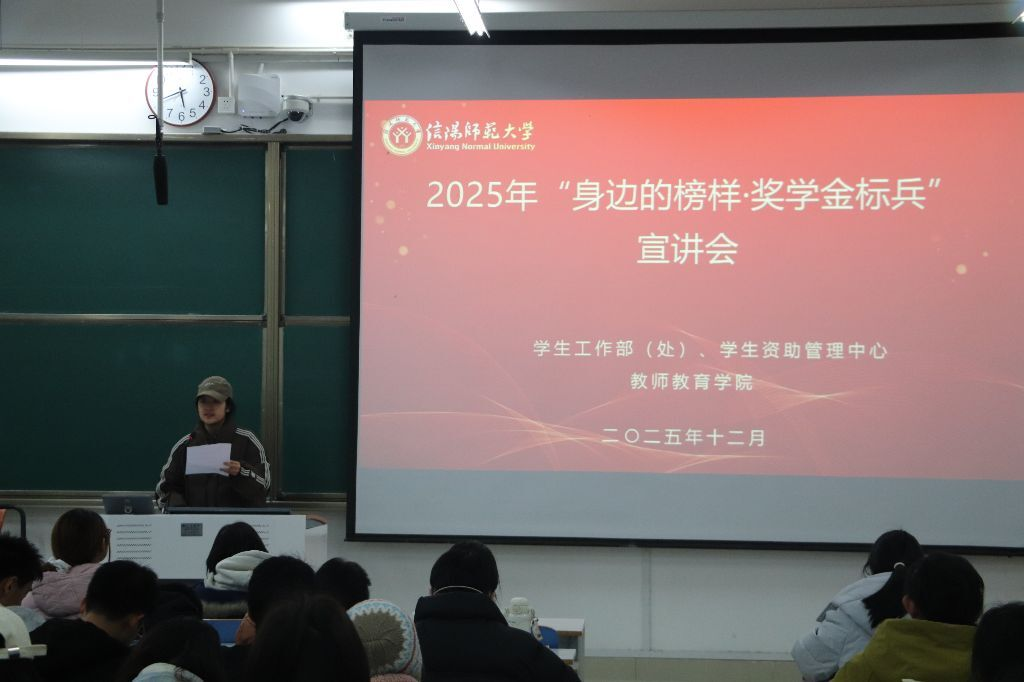 为树立可及标杆,激发学子动力,12月24日,教师教育学院在社科楼414教室举办2025年“身边的榜样·奖学金标兵”宣讲会。外国语学院郭郝冉、1946伟德官方网站李萌以及国际教育学院于子涵三位奖学金标兵受邀作分享,该院全体学子到场聆听。
